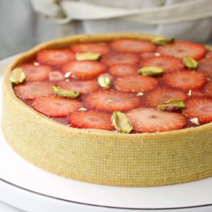 Questa crostata fragole e pistacchio è una ricetta che preparo