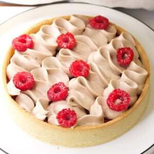 In questa versione ho completato il dolce, decorando con foglioline di menta fresca e un disco di frolla al limone.